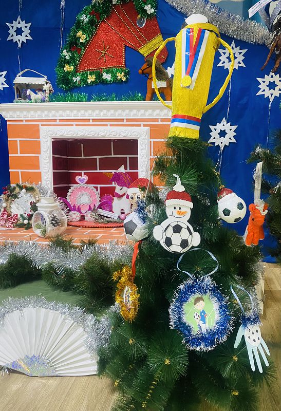 Воспитанники нашего детского сада участвуют во Всероссийском фестивале: «Футбол в школе». В рамках которого проводится акция: «Футбольная ёлочка», для которой нужно было сделать, вместе с родителями, ёлочные игрушки, на футбольную тему.