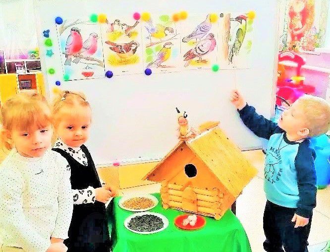 В рамках празднования дня зимующих птиц в первой младшей группе «Березка» был проведен тематический день «Трудно птицам зимовать - будем птицам помогать». Ребята с удовольствием слушали рассказы, отгадывали загадки, рассматривали энциклопедии, посмотрели мультфильмы «В гостях у зимующих птиц». Воспитанники выполнили творческие работы «Птичья столовая», «Вот на ветках посмотри с красной грудкой снегири».
