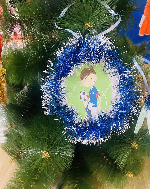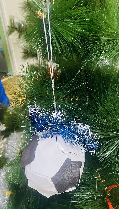 Воспитанники нашего детского сада участвуют во Всероссийском фестивале: «Футбол в школе». В рамках которого проводится акция: «Футбольная ёлочка», для которой нужно было сделать, вместе с родителями, ёлочные игрушки, на футбольную тему.