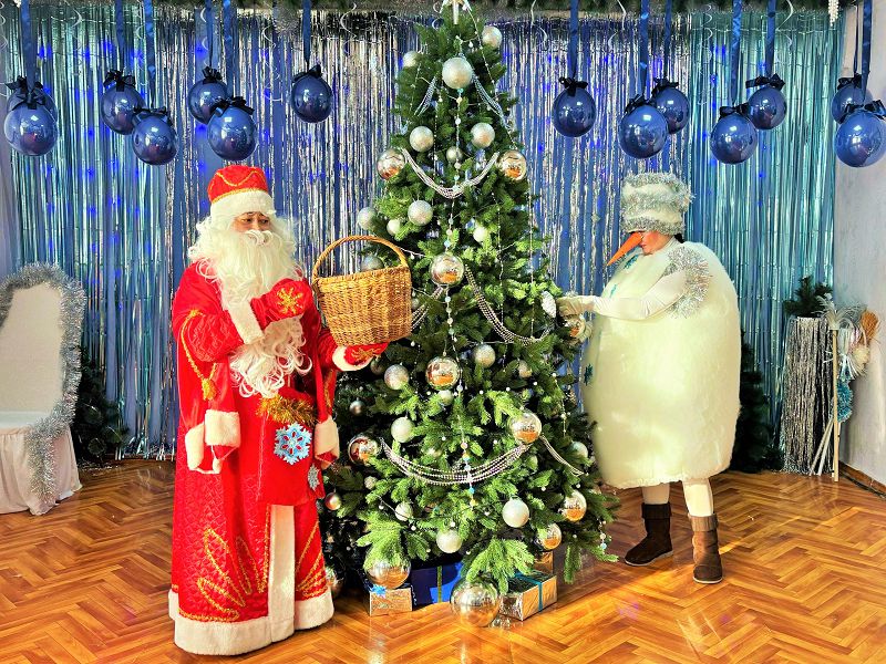 На развлечении дети веселились у новогодней елки: играли, танцевали и пели песни. А в конце праздника ёлочка погасила свои огоньки…
