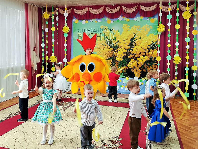 Праздник состоялся в красиво украшенном зале, и в гости к детям приходило «Солнышко» с волшебными ленточками – пожеланиями. Вместе с Солнышком дети станцевали солнечный танец с яркими, желтыми лентами. Дети для своих любимых мам и бабушек: пели, танцевали, рассказывали стихи, участвовали в играх. А еще стирали белье, и собирали игрушки.