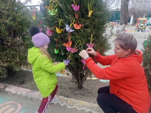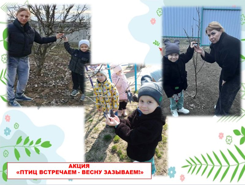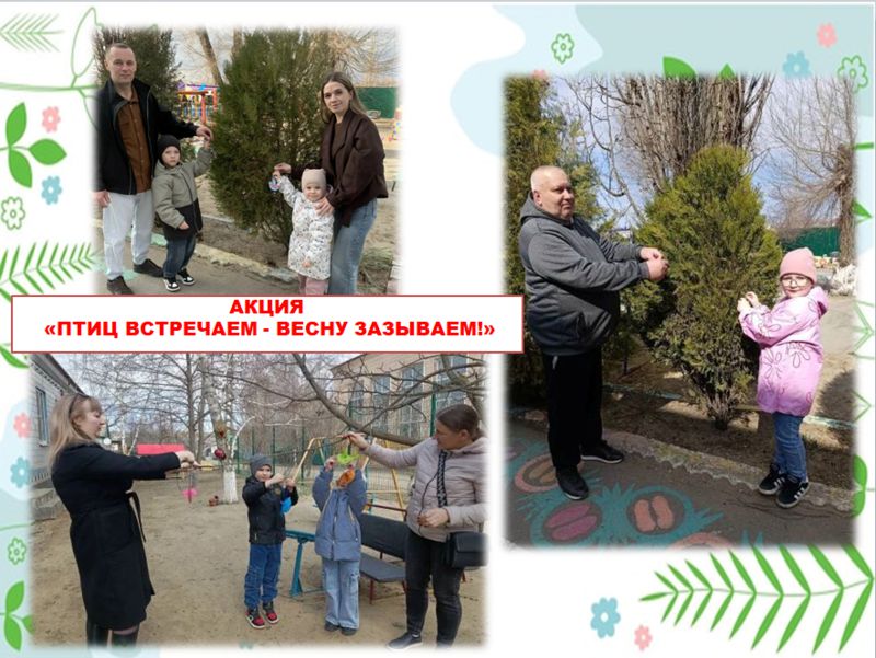 В нашем детском саду, в рамках казачьего фестиваля «От Дона Тихого идем!» прошла замечательная акция "Птиц встречаем - весну зазываем!". Ребята из всех групп с увлечением мастерили птичек. А в день народного праздника "Сороки" они вместе с родителями вышли на улицу и развесили сделанных пернатых друзей , напевая при этом старинные заклички, чтобы поскорее позвать к нам долгожданную Весну-красну!