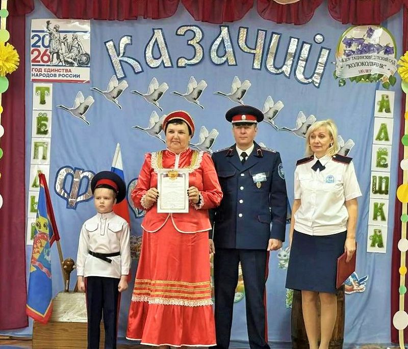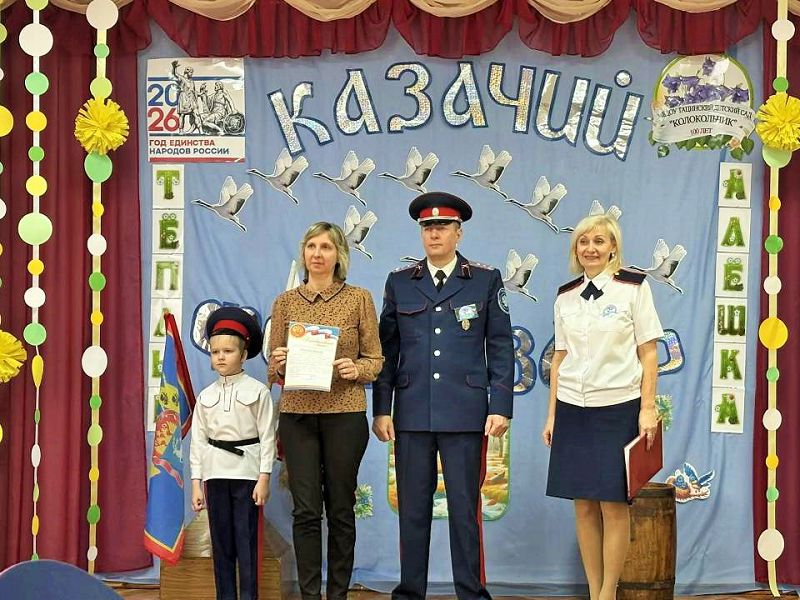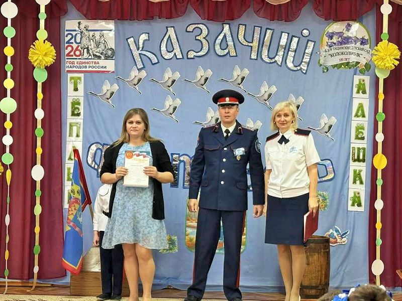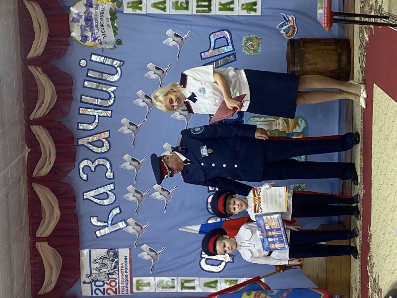 На фестивале присутствовал гость - первый заместитель атамана Тацинского юрта подъесаул Бударин С.А. Он вручил коллективу детского сада благодарственное письмо за активную и плодотворную работу по патриотическому воспитанию подрастающего поколения,