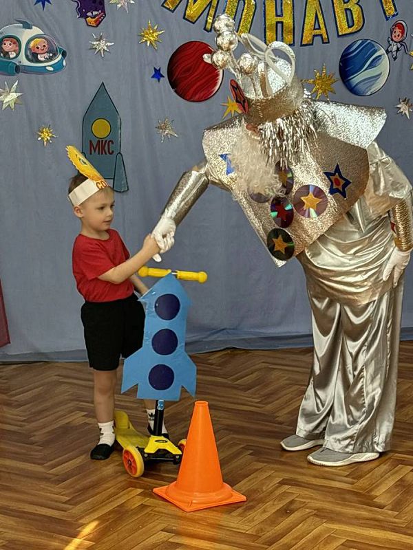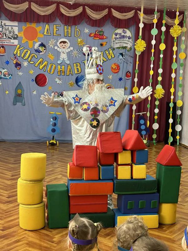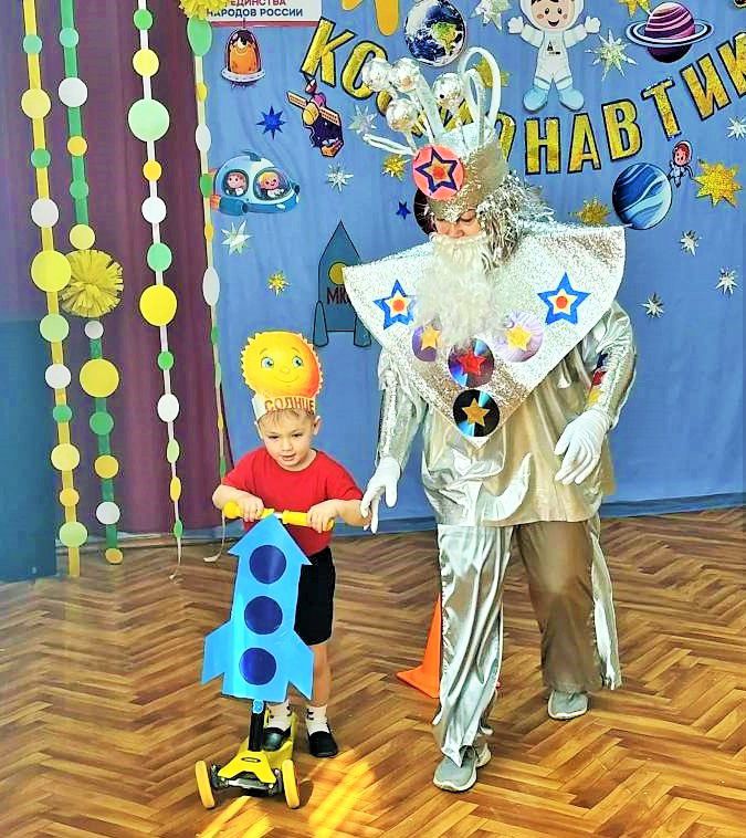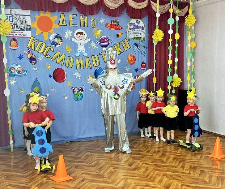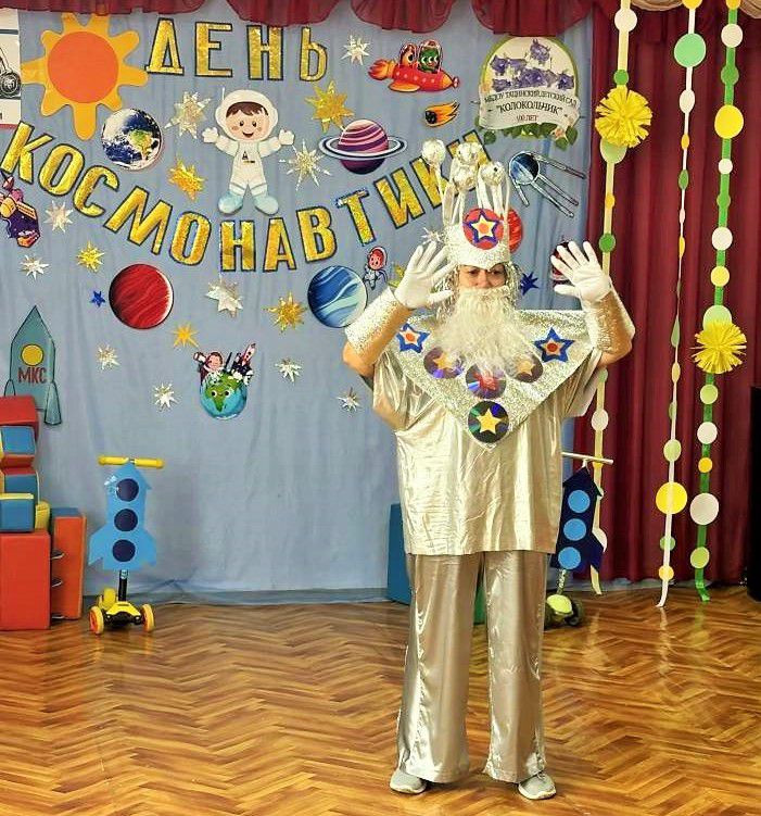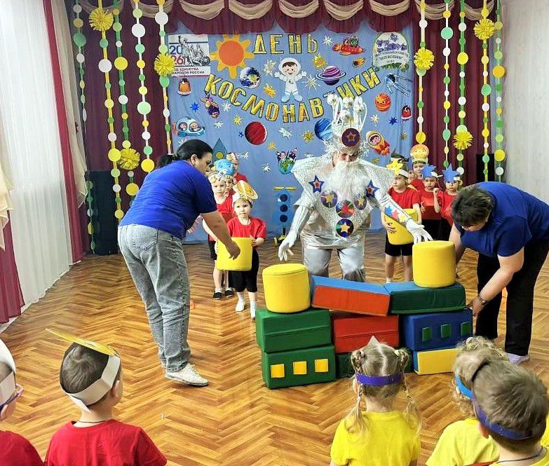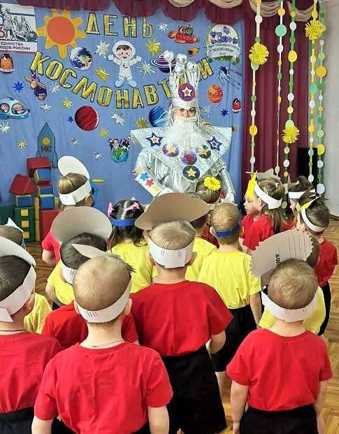 Накануне праздника в нашем детском саду воспитанники 2 младшей группы №1 «Одуванчик» (воспитатель Мышанская Н.В.), 2 младшей группы №2 (воспитатель Громадина А.А.) и средней группы «Рябинка» ( воспитатель Школенко А.С.) отправились в путешествие с космическим путешественником.