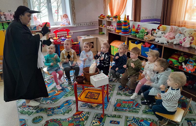 В рамках проекта «Фольклор – душа народа» в первой младшей группе «Березка» прошло развлечение « Сорока – Белобока к нам пришла». В гости к малышам пришла Сорока. Ребята спели веселую песню «Солнышко», с Сорокой-Белобокой потанцевали. Понравилась малышам пальчиковая игра- потешка "Сорока – Белобока кашу варила". Ребятишки поблагодарили Сороку за вкусную кашу, и пообещали, что будут кушать её, чтобы стать здоровыми, крепкими и сильными. А еще, ребята научили Сороку «печь» пирожки и прянички, исполнив песню «Пирожки».