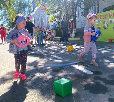 Воспитатели в течении недели проводили с детьми беседы, играли, читали художественную литературу по таким направлениям как: «Пожарная безопасность», «Безопасность дорожного движения», «Безопасность на улице», «Безопасность дома». В конце недели с детьми было проведено спортивное развлечение «Путешествие в страну безопасности»