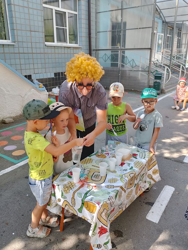 Сегодня в наш детский сад приходил в гости ученый по фамилии Всезнайкин. Он вместе с детьми проводил увлекательные опыты, такие как: «Разноцветная вода», «Невидимая картина», «Радужная вода». «Волшебное притяжение», Воздушный шарик, который надувается сам», «Цветные фонтаны», «Дырявая бутылка из которой не льётся вода».