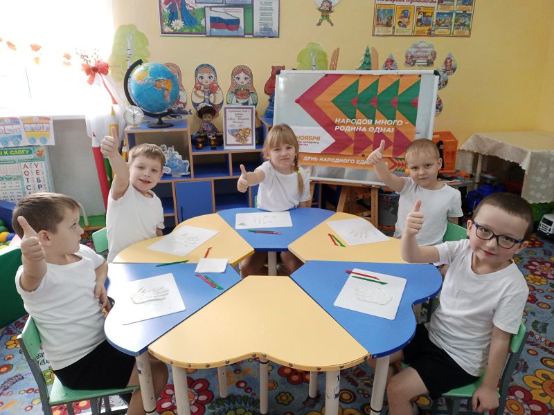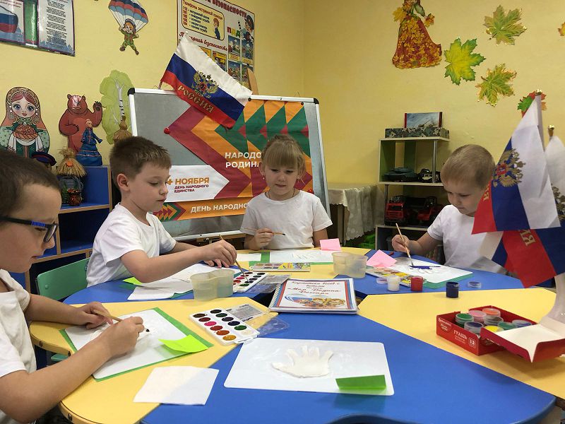 Дети познакомились с историей возникновения праздника и подвигами наших предков во имя независимости Родины. Ребята вспомнили национальности людей, которые проживают на территории нашей необъятной России, рассмотрели их национальные костюмах, выяснили, что сила России заключается в том, что люди разных национальностей живут вместе и дружно.