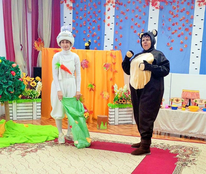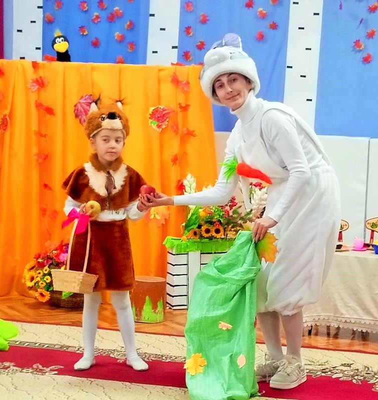 Ребята были очень эмоциональны , с большим удовольствием перевоплощались в персонажей сказки , переживая происходящие в них события ,герои сказки привлекали ребят - зрителей поиграть в осенние эстафеты «Дары осени». С зайчиком поиграли в игру «Соберем яблочки» , с ежиком — «Соберем сьедобные грибы »,с белочкой — «Передай бубен »; « Шишки и орешки для белочки » .