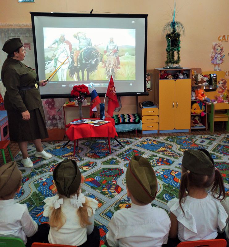 В честь этой даты в средней группе «Рябинка», прошло тематическое мероприятие, цель которого: сформировать у детей чувство патриотизма, чувство гордости и уважения к воинам, защитникам Отечества.