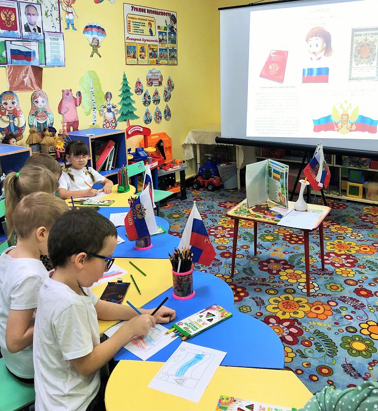 В рамках подготовке к Дню Конституции РФ, в нашем детском саду в группе «Солнышко» прошло занятие, посвященное этому празднику. Воспитанники ознакомились с понятием «закон», «порядок», «право», вспомнили государственную символику: флаг, герб.