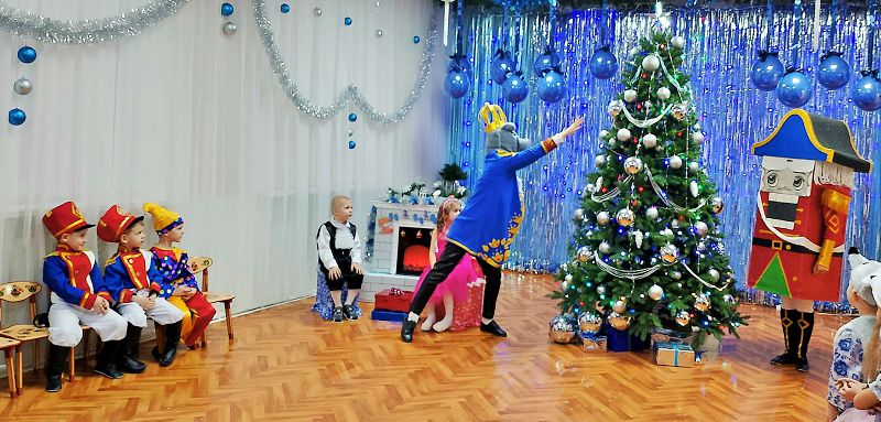 23 декабря в старшей группе «Лазорик» состоялось новогоднее представление. Дети и взрослые перевоплотились в героев сказки «Щелкунчик» и переживали удивительные новогодние приключения Мари и Щелкунчика. отважные солдаты, очаровательные куколки и ёлочные игрушки окунулись в мир волшебства и приключений. Вместе они сражались против коварного Мышиного Короля, который заколдовал любимого героя Мари.
