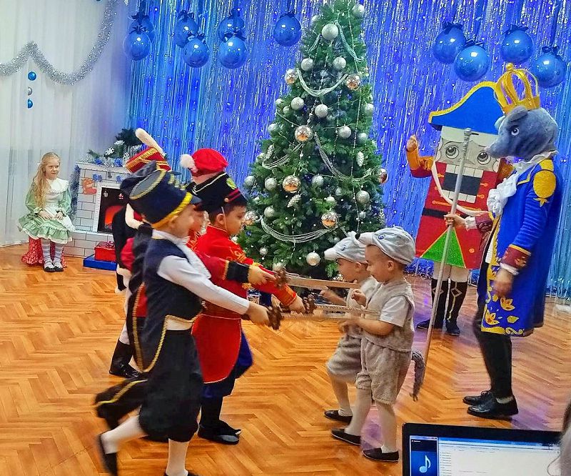 А кто же без главного противника? Зловещий Мышиный Король и его верные мыши добавили интриги и драматизма в наше представление, заставив зрителей затаить дыхание. Нельзя не отметить и мальчиков, которые также блестяще справились с ролью елочных игрушек, украсив сцену и добавив праздничного настроения.