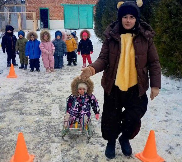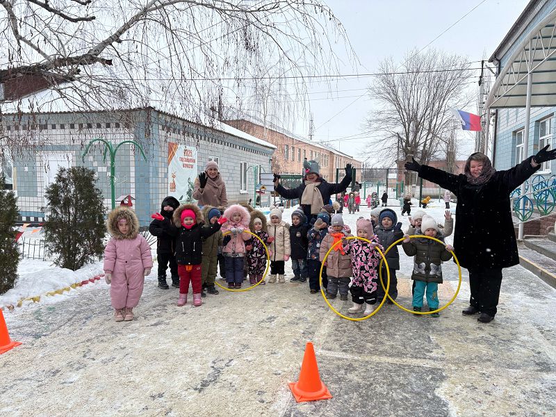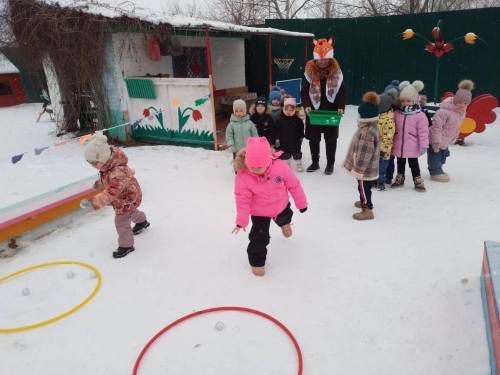 Сегодня была необычная прогулка у воспитанников нашего детского сада: «Зимние старты». Ребята проходили эстафеты: «Переправа», «Попади в цель», «Гонки на санках», «Хоккей», «Лабиринт», «Перенеси снежок», ккоторые приготовили гости из леса: заяц (воспитатель Ляженко Е.А), лиса (воспитатель Забродина И.П), волк ( старший воспитатель: Адарченко Н.А), медведь ( инструктор по физической культуре: Благовещенская Ю.С), дракон ( помощник воспитателя: Водолазова И.В), бычок (воспитатель: Мышанская Н.В).