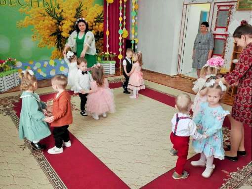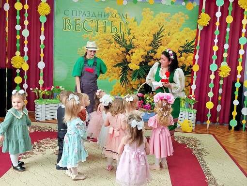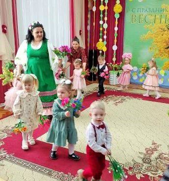 В преддверии Международного женского дня 8 марта в нашем детском саду прошли праздничные мероприятия. Дети младшей группы «Березка» тоже не остались в стороне. К малышам приходила Весна с волшебной палочкой, и вместе с ней дети оказались в цветочной стране, где встретили Садовника и помогли вырастить цветы. Малыши с помощью весенней волшебной палочки превращались капелек, ручейков. Они очень искренне, непосредственно и с любовью пели песни, собирали лучики для солнышки, с цветочками танцевали .