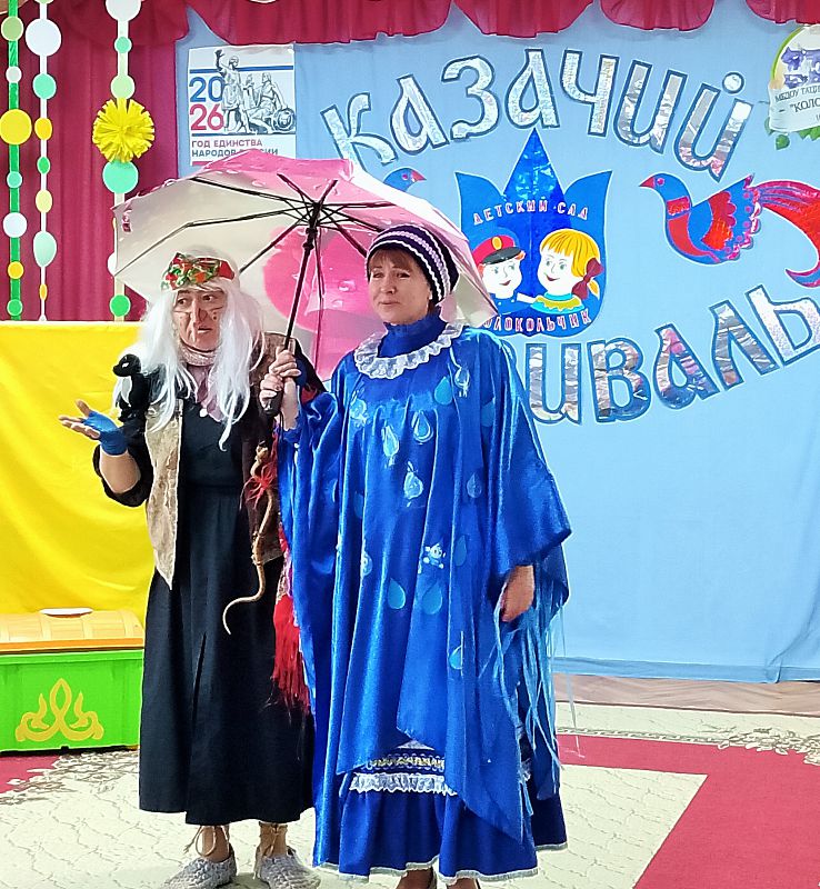 Сегодня- второй день фестиваля. В гости к казачатам пришла героиня этого дня - Василиса- вешней воды указательница ( воспитатель Забродина И.П).