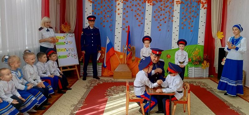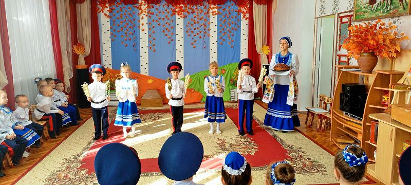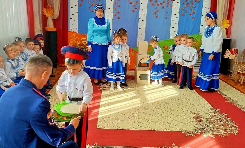 О народных традициях и истории славного праздника, приметах и пословицах поведала детям добрая хозяюшка. В гости к казачатам заглянул домовенок Кузьма. С ним они водили хороводы, «тянули репку», катались на карусели. Звучали донские песни, слышался смех казачат, веселье разносилось по всему детскому саду.